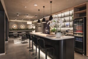 “We redesigned the entire space, which was formerly an Audi service workshop, to transform it into a spacious, comfortable, and uniquely elegant lounge for our customers. The combination of concrete panels to innovate the horizontal and vertical light lines, along with the accent of the elegant staircase design, truly expands the sense of space—providing the feeling of a classic, luxurious art gallery where you can enjoy time for yourself,” stated Ms. Mariella Genet, Founder and Creative Director of Lifestyle Connected, the design company behind the Audi Charging Lounge.